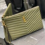 YSL Cowhide Leather Monogram Handle Bag Green With Gold 440222