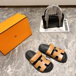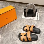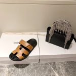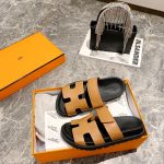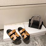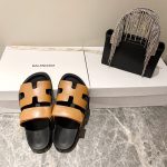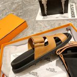 Hermes 2021 spring and summer new Velcro leather slippers (Brown)