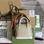 Gucci Beige And White GG Supreme Canvas Horsebit 1955 GG Mini Bag 677212