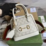 Gucci Beige And White GG Supreme Canvas Horsebit 1955 GG Mini Bag 677212