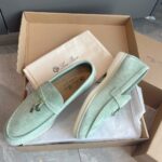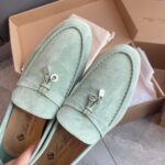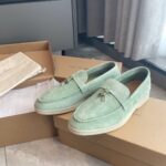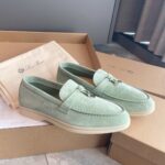 Loro Piana LP Summer Charms Walk Suede Classic All Season Shoes For Women Loafers Fruit Green