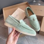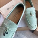Loro Piana LP Summer Charms Walk Suede Classic All Season Shoes For Women Loafers Fruit Green