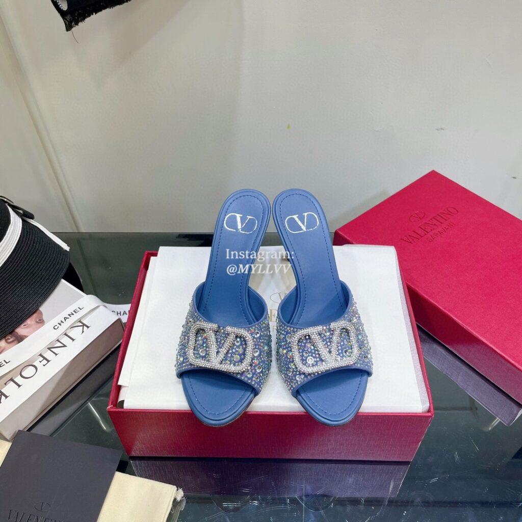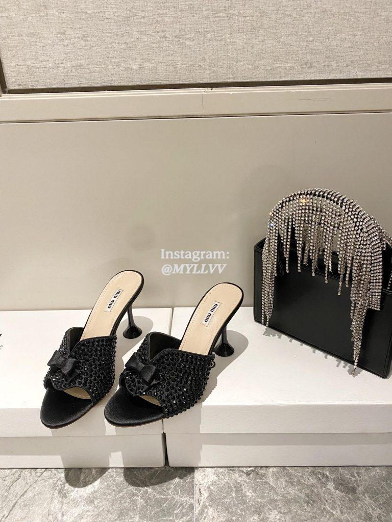 Jimmychoo 2021 new sequined mesh rhinestone mid-heel sandals 6.5cm