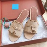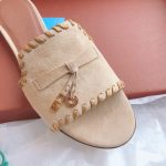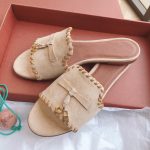 Loro Piana LP Summer Charms Walk Suede Classic Fish Mouth Slippers Nude