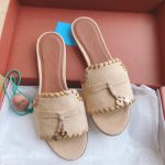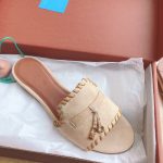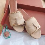 Loro Piana LP Summer Charms Walk Suede Classic Fish Mouth Slippers Nude