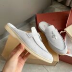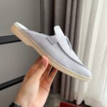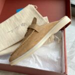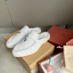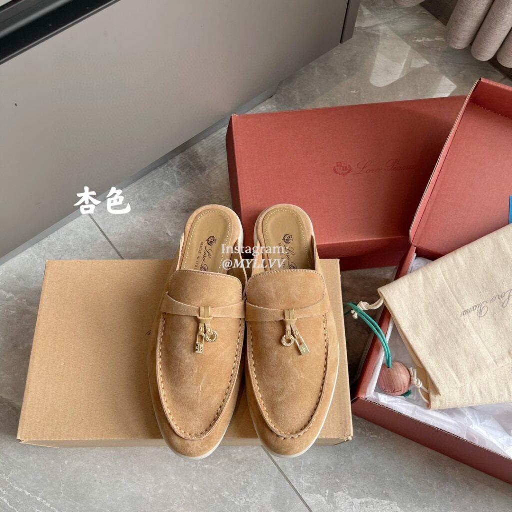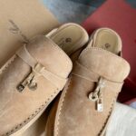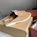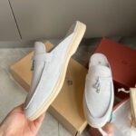 Loro Piana LP Summer Charms Walk Suede Classic Half Slippers For Women Nude