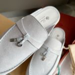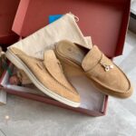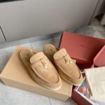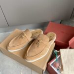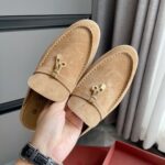 Loro Piana LP Summer Charms Walk Suede Classic Half Slippers For Women Nude