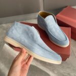 Loro Piana LP Summer Charms Walk Suede High Top Loafers Shoes For Women and Men Grey
