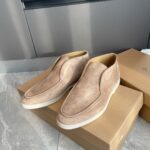 Loro Piana LP Summer Charms Walk Suede High Top Loafers Shoes For Women and Men Grey
