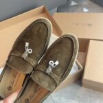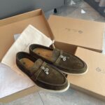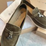 Loro Piana LP Summer Charms Walk Suede Low Top Loafers Shoes For Men Black