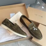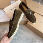 Loro Piana LP Summer Charms Walk Suede Low Top Loafers Shoes For Men Black