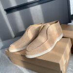 Loro Piana LP Summer Charms Walk Suede High Top Loafers Shoes For Women and Men Nude