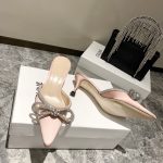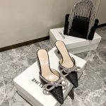 MACH&MACH 2021 spring and summer new rhinestone silk high-heeled slippers (Black)