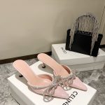 The pointed design highlights the avant-garde, and the shallow mouth shape is more gentle. The upper is made of imported silk fabrics and sp...