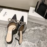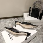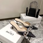 MACH&MACH 2021 spring and summer new rhinestone silk high-heeled slippers (Black)