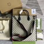 Gucci Beige And Blue GG Supreme Canvas Medium Tote Bag With Interlocking G 674155