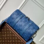 The Mini Soft Trunk is made from denim-blue leather with a faded version of the House’s emblematic Monogram motif debossed and printed on th...