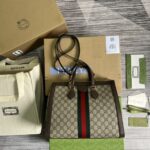 Gucci Beige And White Supreme Canvas Ophidia GG Medium Tote Bag 524537