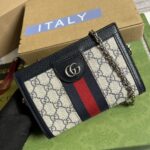 Gucci Beige And Blue GG Supreme Canvas Ophidia Mini Shoulder Bag 602676
