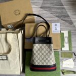 The world of Ophidia evolves with the introduction of a new bucket bag shape. Crafted in GG Supreme canvas with inlaid green and red Web str...
