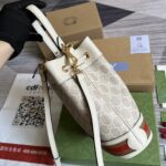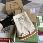 The world of Ophidia evolves with the introduction of a new bucket bag shape. Crafted in GG Supreme canvas with inlaid green and red Web str...