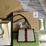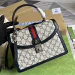Gucci Beige And Blue GG Supreme Canvas Ophidia Small GG Top Handle Bag 651055