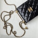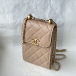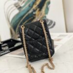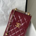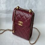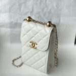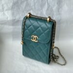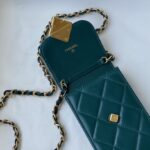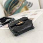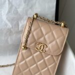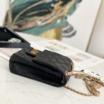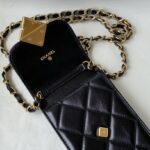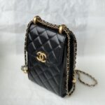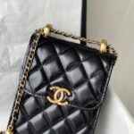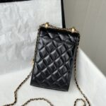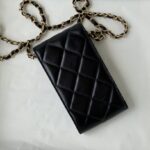 Chanel Diamond Plaid Cowhide Phone Bag Black With Gold AS1326