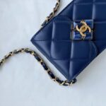Chanel Diamond Plaid Lambskin Phone Bag Blue With Gold AS81128
