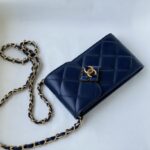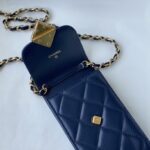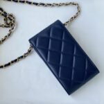 Chanel Diamond Plaid Lambskin Phone Bag Blue With Gold AS81128