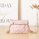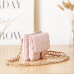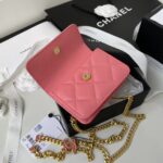 Chanel Diamond Plaid Lambskin Mini Pocket Bag Peach Red With Gold AP2638