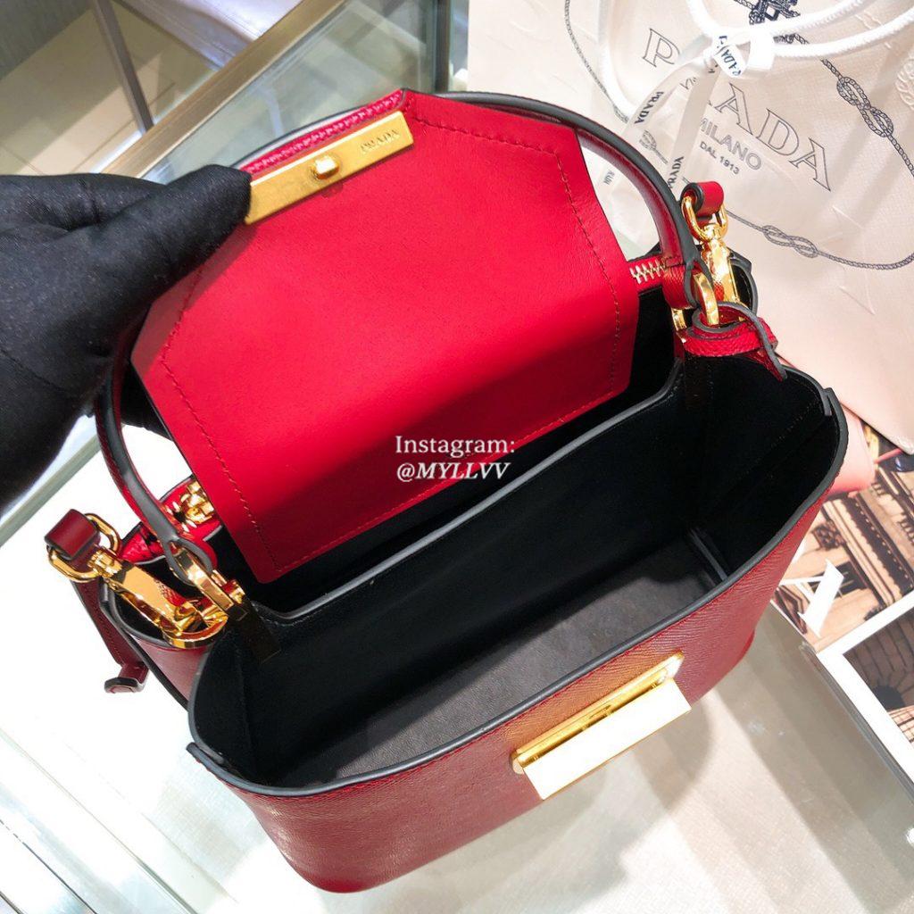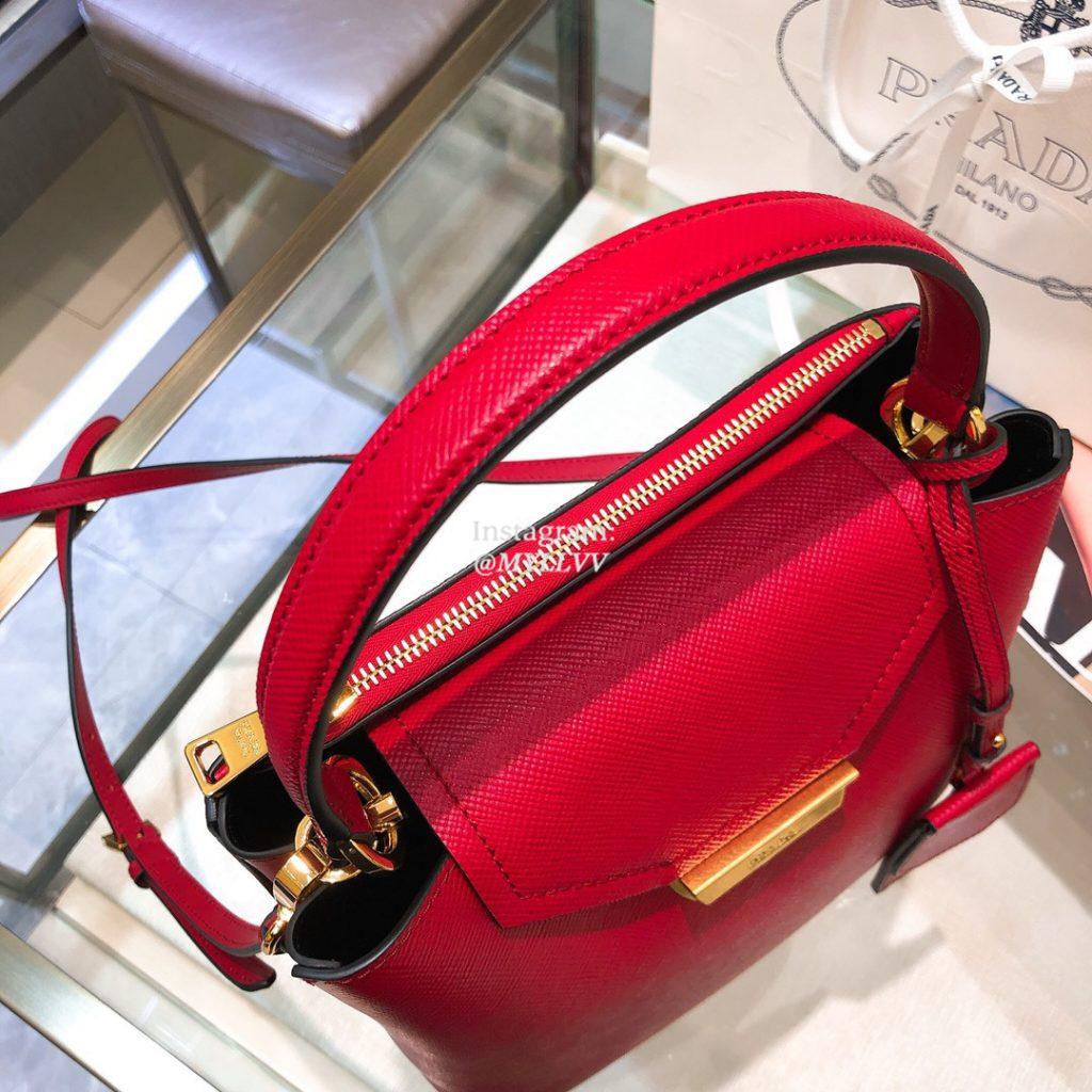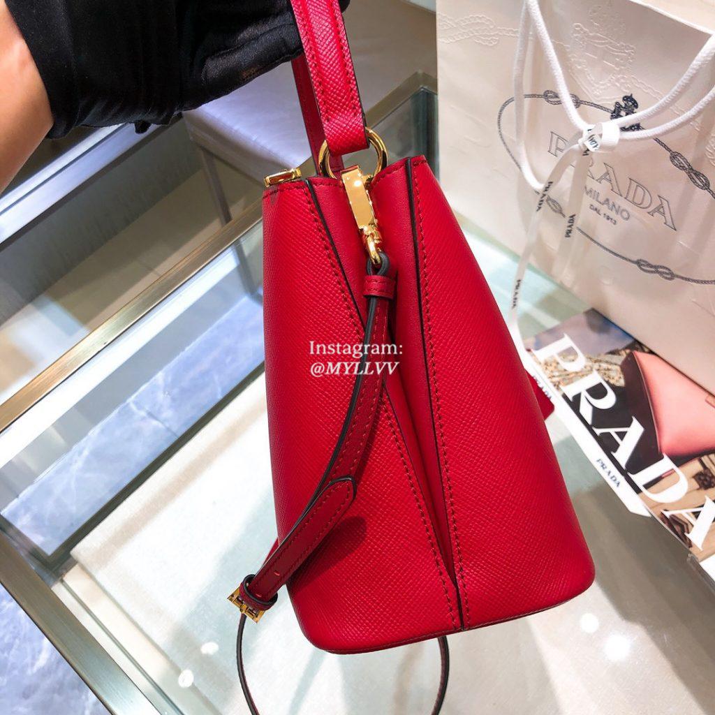 PRADA 2021 New Saffiano Leather Women’s Bucket Handbag Burgundy 1BN012