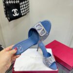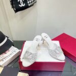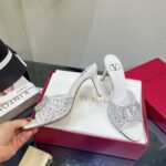 Valentino Full Diamonds V Lambskin High Heel Sandal Shoe White