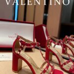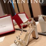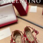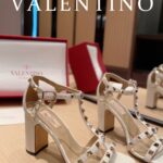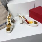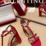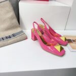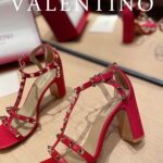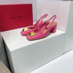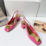 Valentino Big Gold Rivet Patent Leather High Heel Sandal Shoe Rose Red