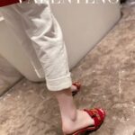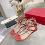 Valentino Gold V Patent Leather High Heel Sandal Shoe Red