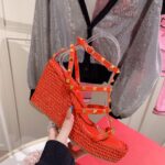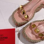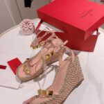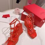 Valentino Big Gold Rivet Cowhide High Heel Sandal Shoe Pink