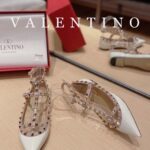 Valentino Gold Rivet Patent Leather Flat Sandal Shoe White