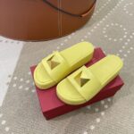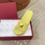 Valentino Garavani Gold Rivet Lambskin Thick Bottom Slipper Shoe Rose Red