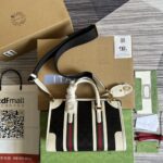 The top handle bag is reimagined in a new duffle style, part of the House’s latest collection Exquisite Gucci. Crafted in black Origin...