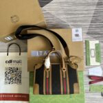 The top handle bag is reimagined in a new duffle style, part of the House’s latest collection Exquisite Gucci. Crafted in black Origin...