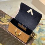 This twist small handbag has a Taurillon leather body and a silky calf leather pleated handle. The materials collide, and the LV twist twist...