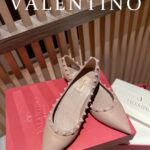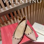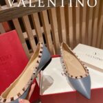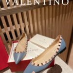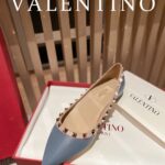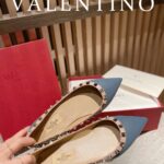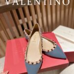 Valentino Gold Rivet Cowhide Flat Sandal Shoe Blue