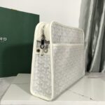 Goyard Goyardine Canvas Chevroches Calfskin Cowhide Jouvence GM Wash Bag White