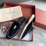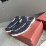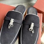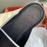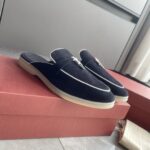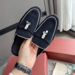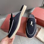 Loro Piana LP Summer Charms Walk Suede Classic Half Slippers For Women Inky Blue/Withe