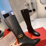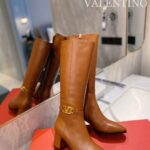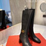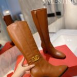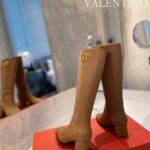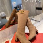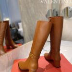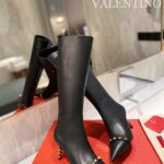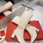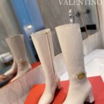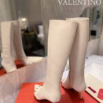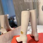 Valentino Gold Rivet Cowhide High Heel Long Boot White