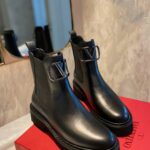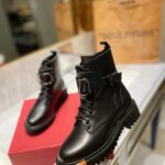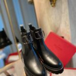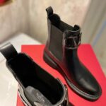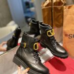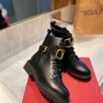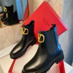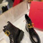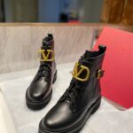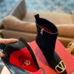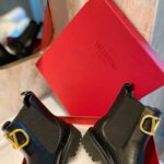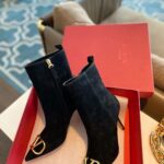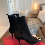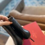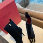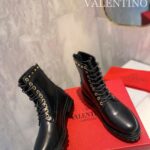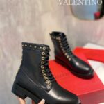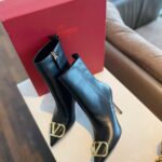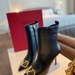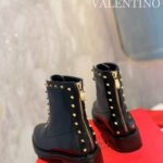 Valentino Gold Rivet Cowhide Zipper High Heel Boot Black