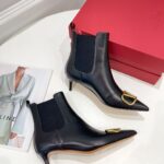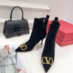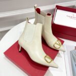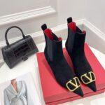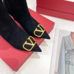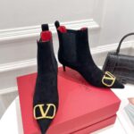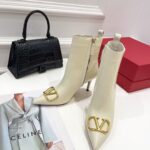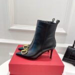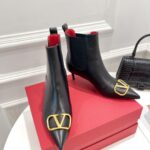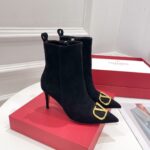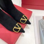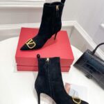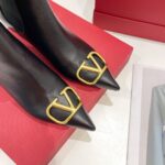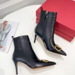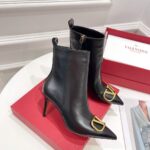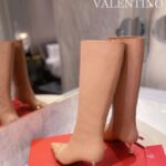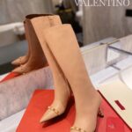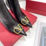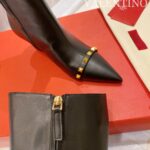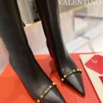 Valentino Gold Rivet Cowhide High Heel Long Boot Black