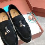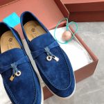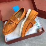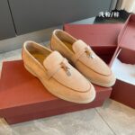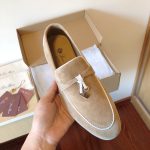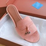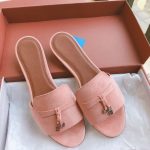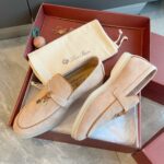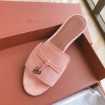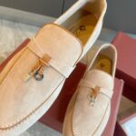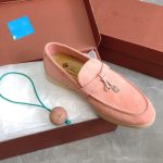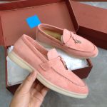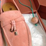 Loro Piana LP Summer Charms Walk Suede Classic All Season Shoes For Women Loafers Light Pink/Brown