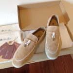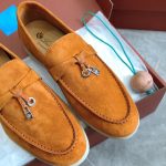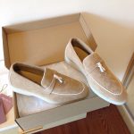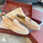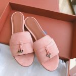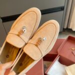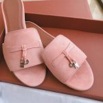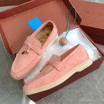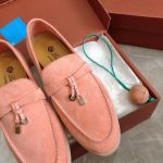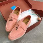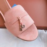 Loro Piana LP Summer Charms Walk Suede Classic All Season Shoes For Women Loafers Light Pink/Brown