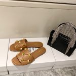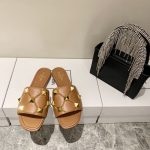 Valentino 2021 spring and summer new rivet flat slippers (Brown)