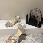 Jimmychoo 2021 spring and summer new sequined high-heeled sandals (Black)